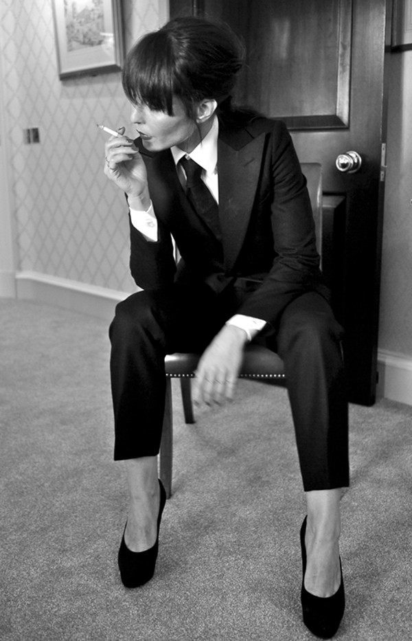 Comme quoi, le costume avec de larges revers à piques peut faire une tenue féminine de caractère.